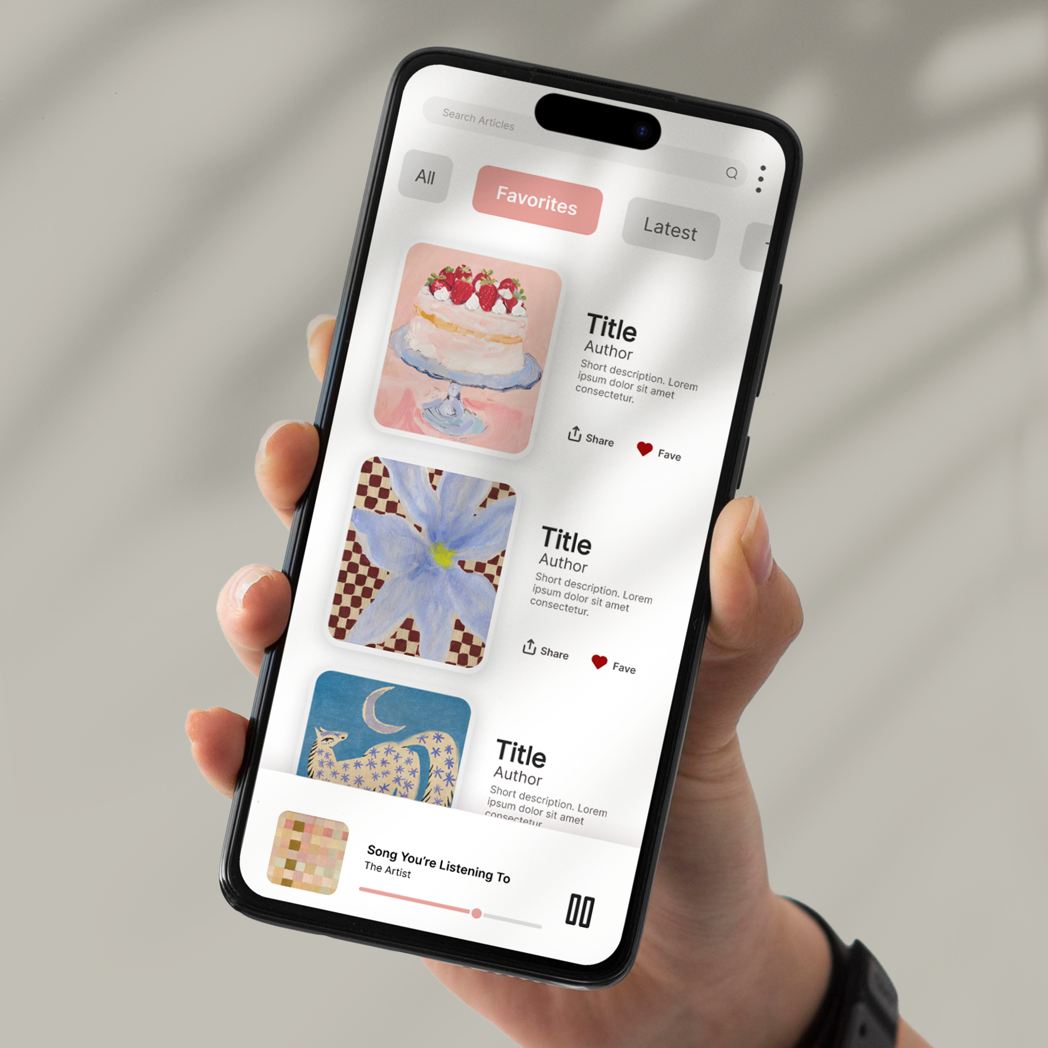 A concept mobile app designed in Figma that blends digital art curation with audio listening. Built with a soft, gallery-inspired UI and intuitive content navigation.